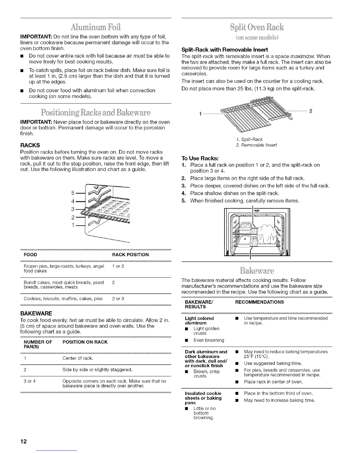 with bakeware on them. Make sure racks are level. To move a