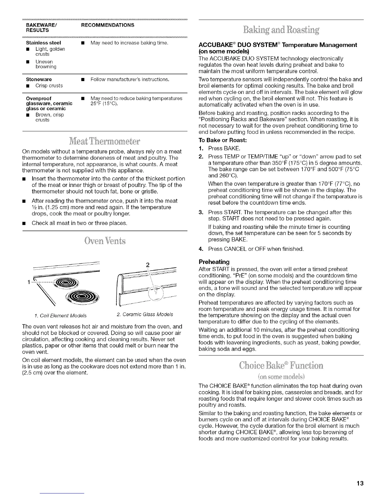 The CHOICE BAKE ° function eliminates the top heat during oven