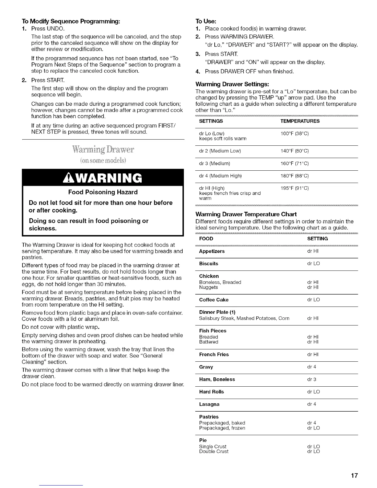 warming drawer. Breads, pastries, and fruit pies may be heated