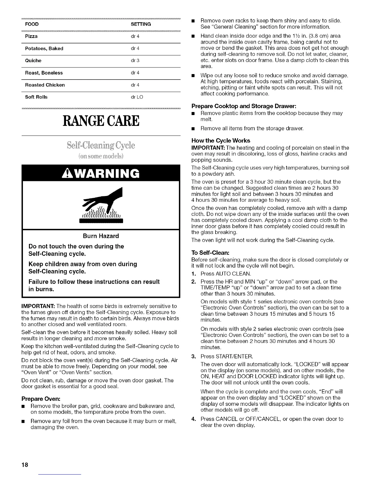 the fumes given off during the Self-Cleaning cycle. Exposure to