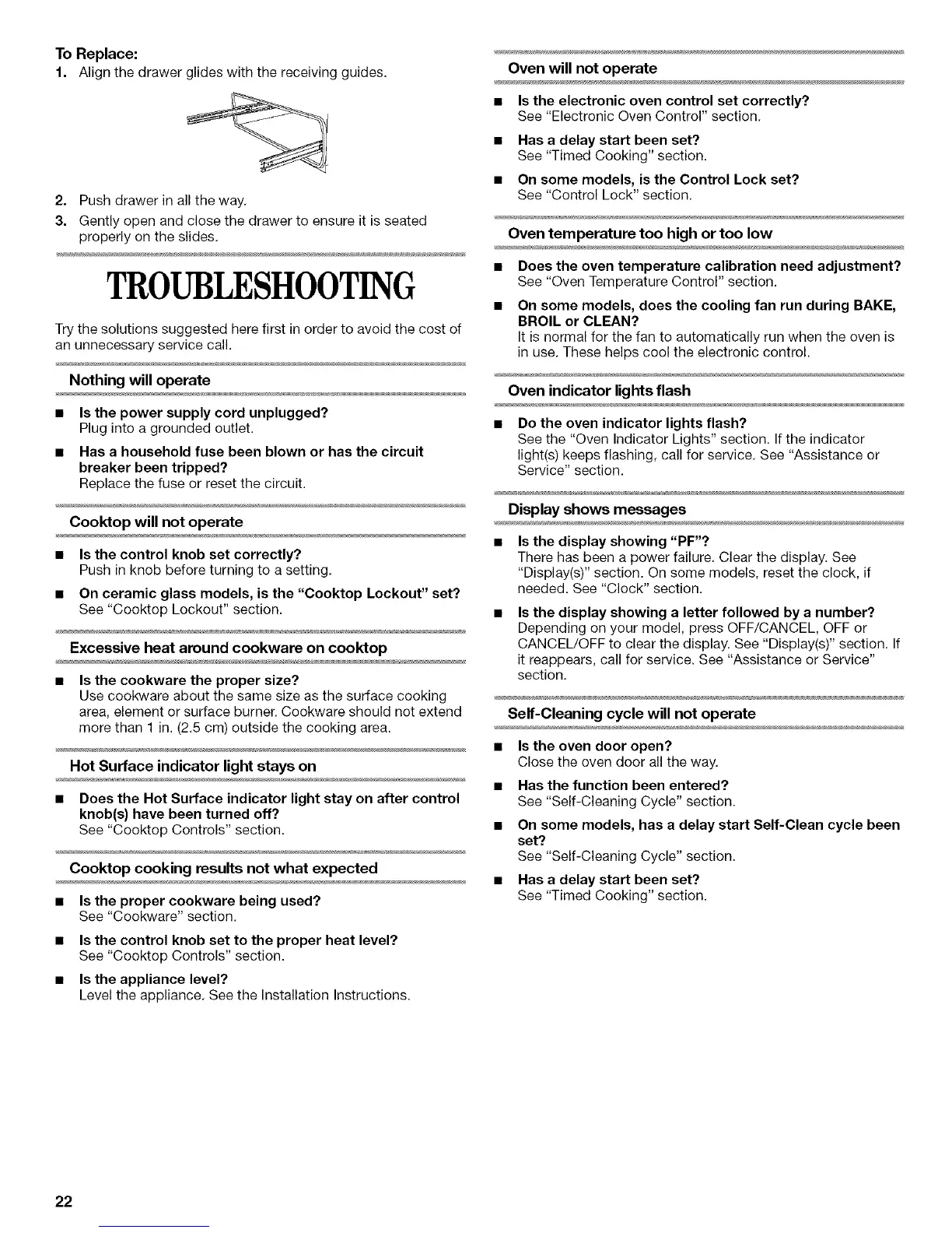 it reappears, call for service. See "Assistance or Service"