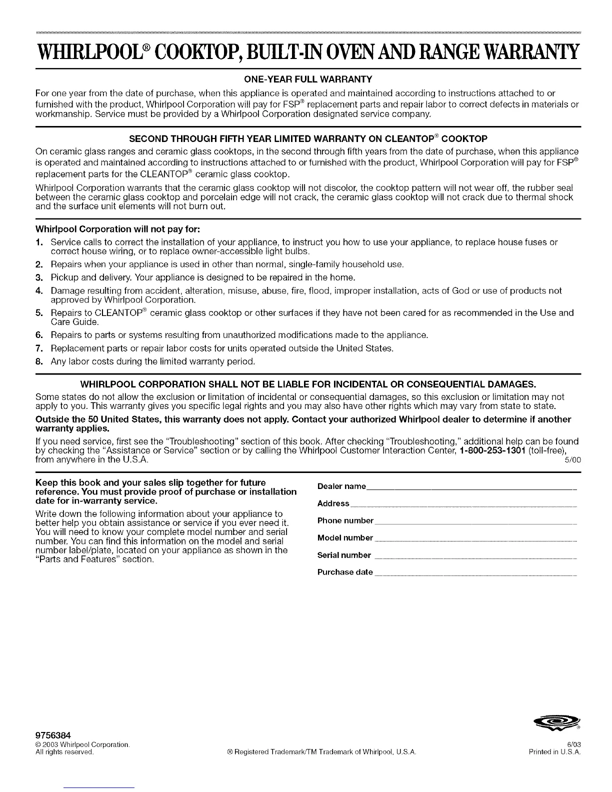 WtI[RLPOOL®COOKTOP,BUILT.INOVENANDRANGEWARRANTY