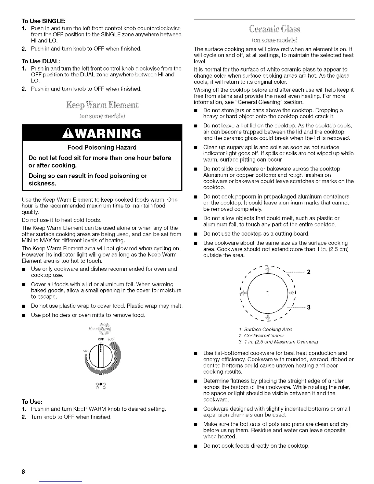 area. Cookware should not extend more than 1 in. (2.5 cm)