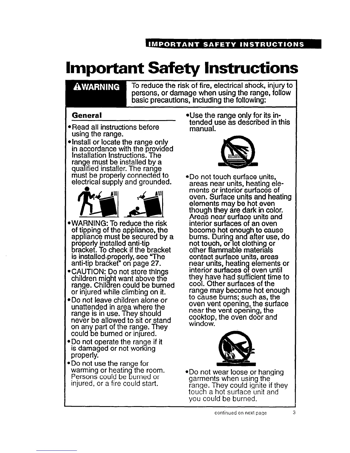 persons, or damage when using the range, follow