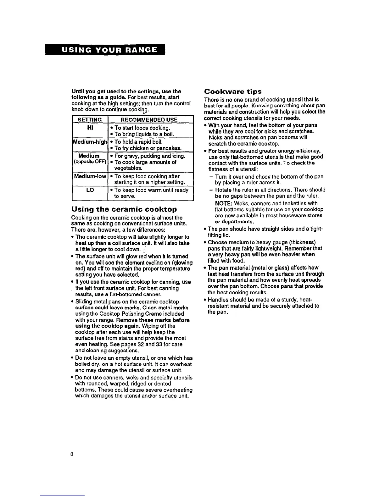 even heating. See pages 32 and 33 for care