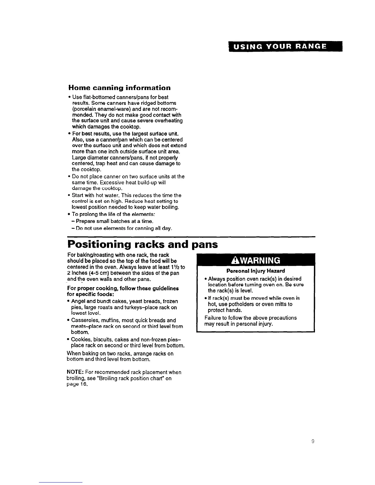 Always position oven rack(s) in desired