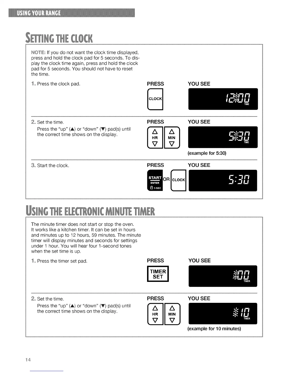 The minute timer does not start or stop the oven.