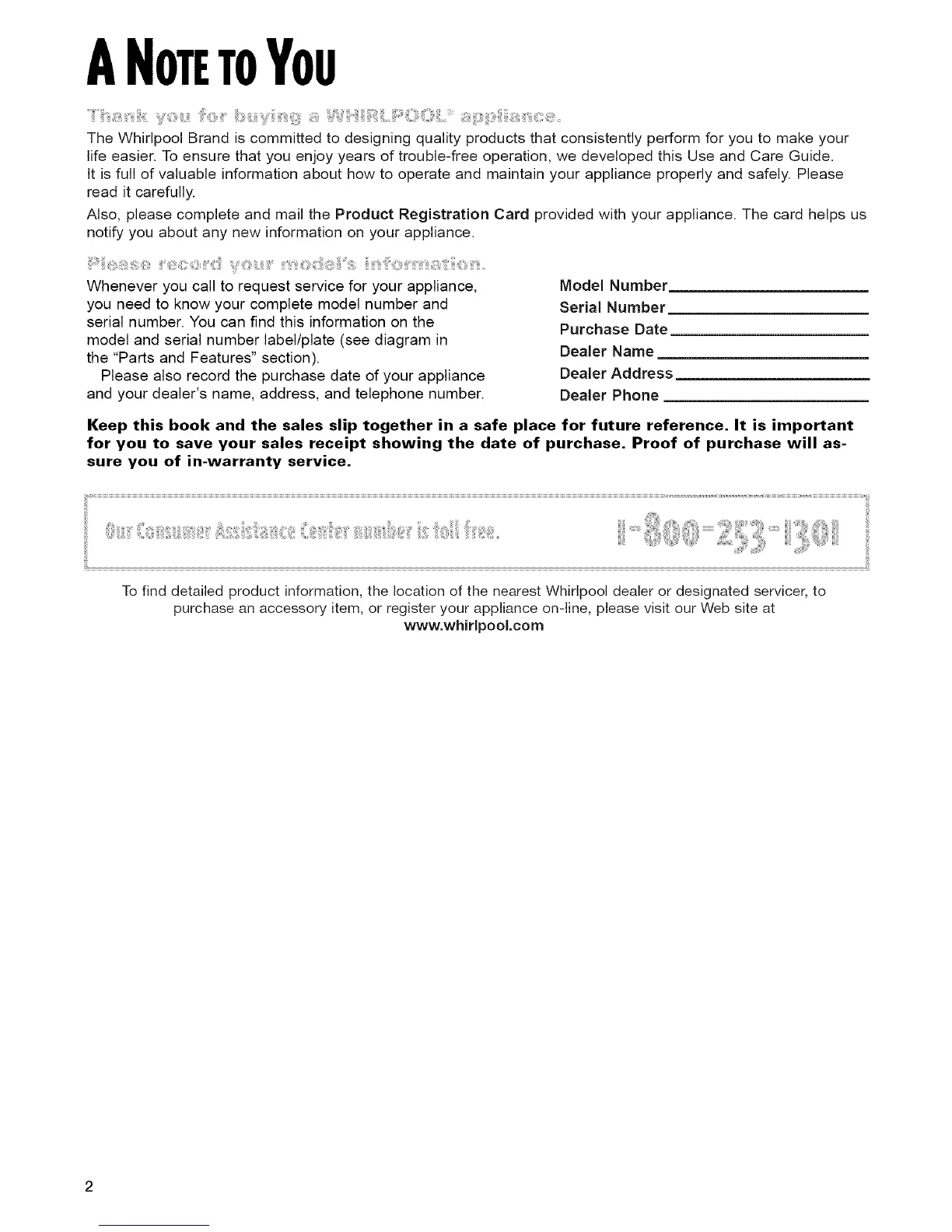 To find detailed product information, the location of the nearest Whirlpool dealer or designated servicer, to