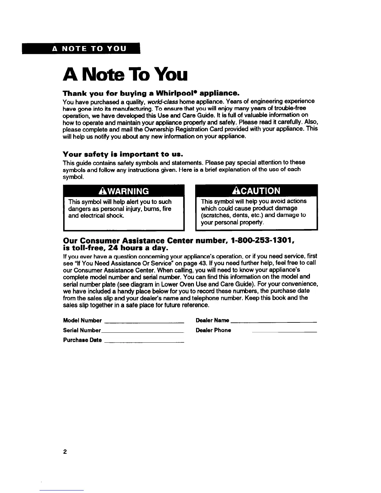You have purchased a quality, worMclass home appliance. Years of engineering experience