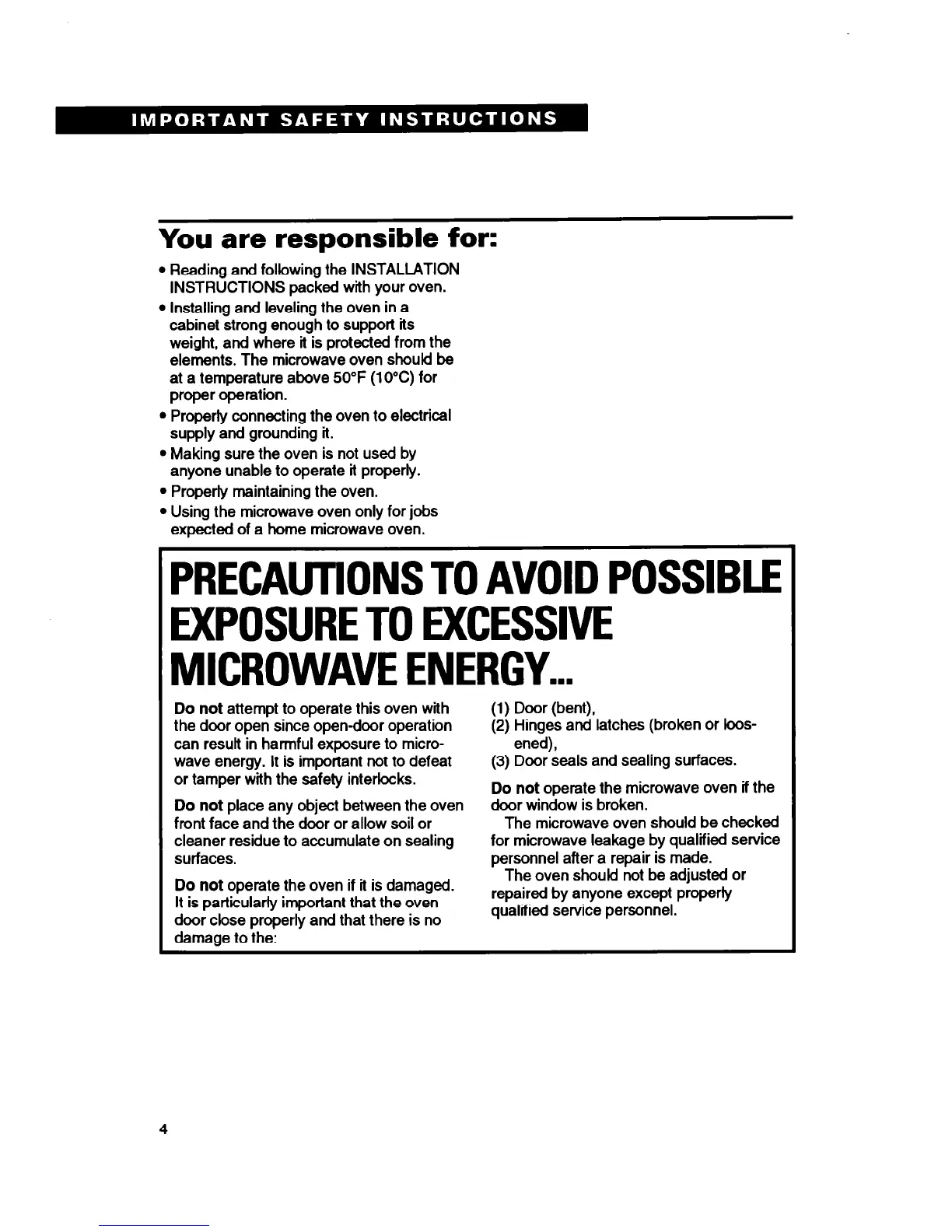 elements. The microwave oven shoukf be