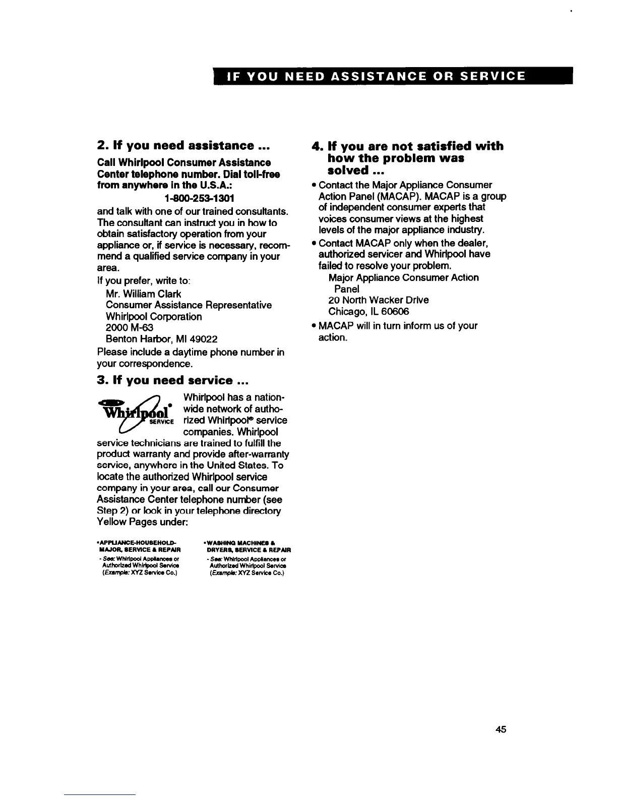 Call Whirlpool Consumer Assistance