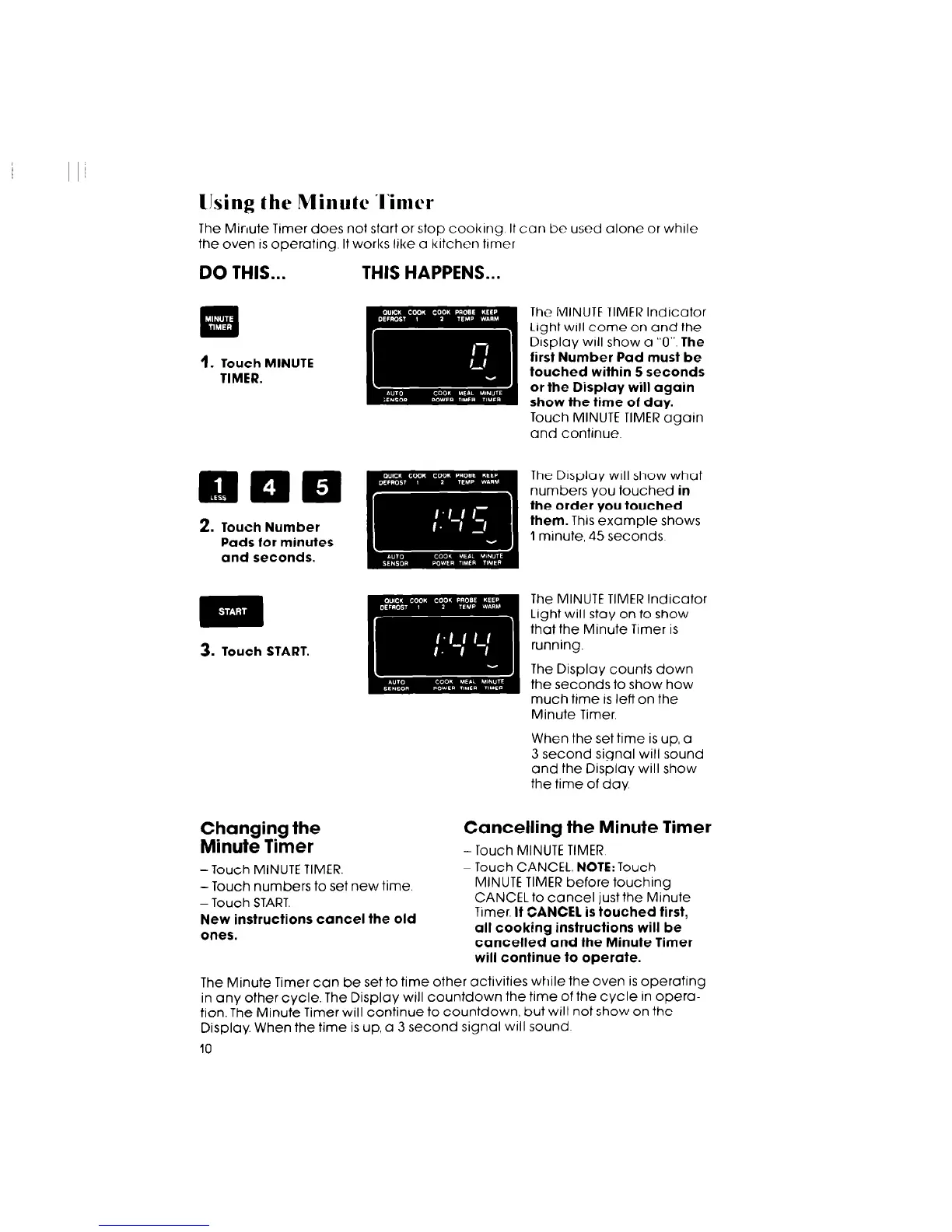 The Minute Trmer does not start or stop cookrng It can be used alone or whrle