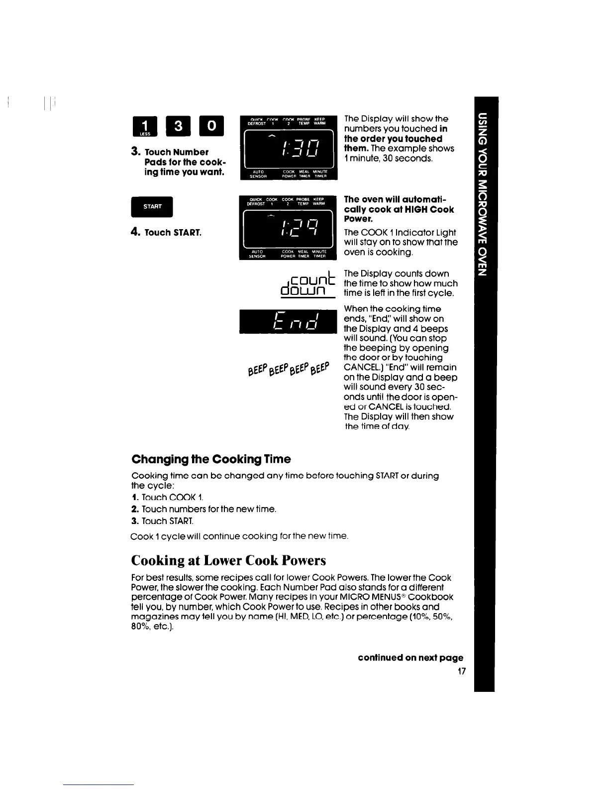 Power, the slower the cooking. Each Number Pad also stands for a different