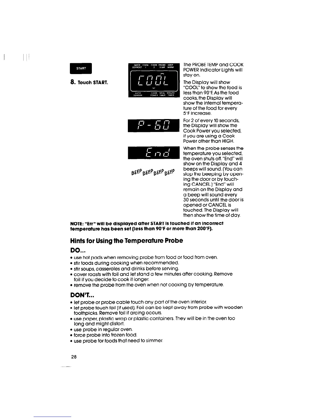 NOTE: r‘Err” will be displayed after START is touched if an incorrect