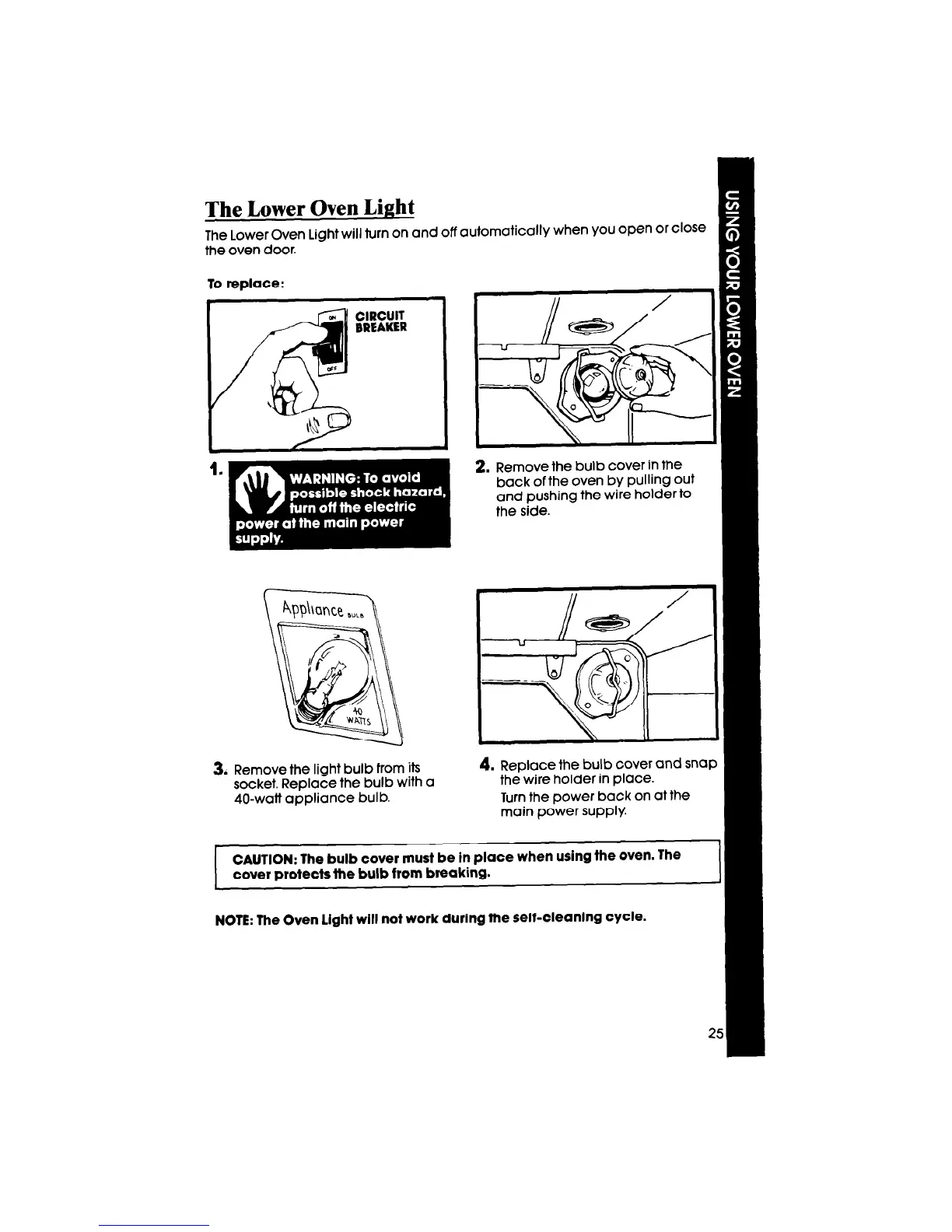 NOTE: The Oven light will not work during the self-cleaning cycle.