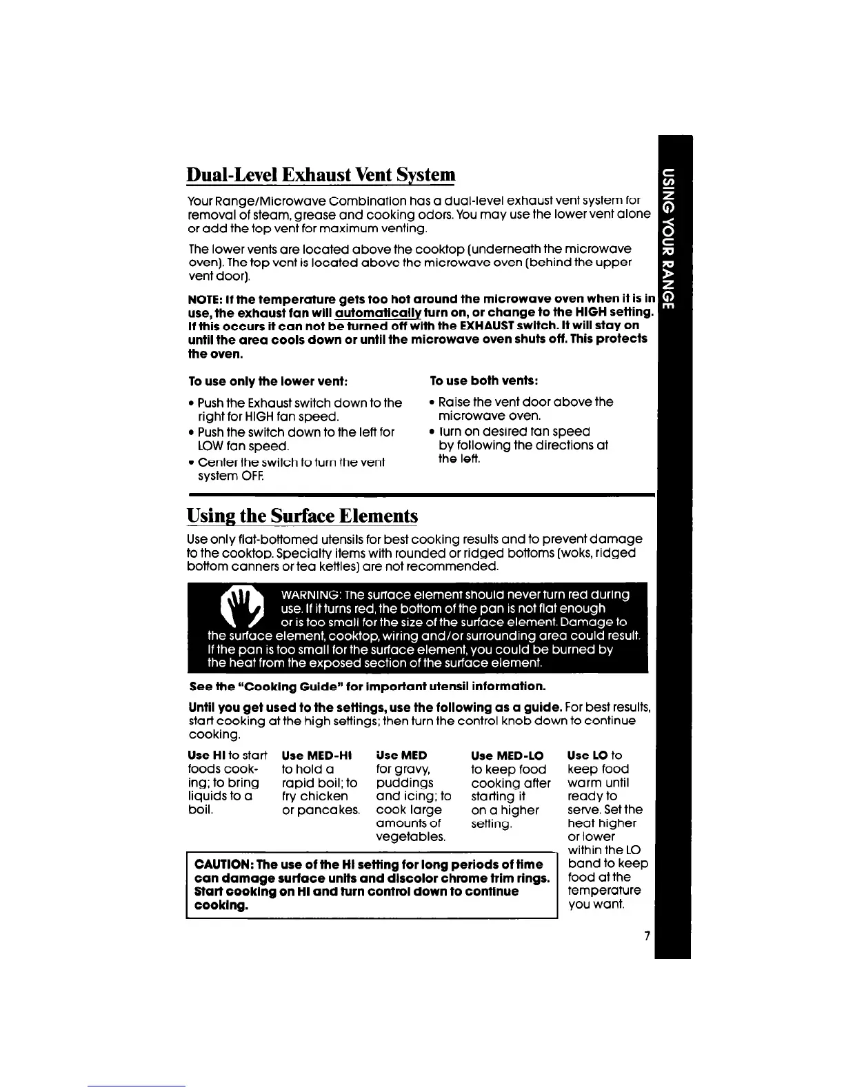 Your Range/Microwave Combination has a dual-level exhaust vent system for