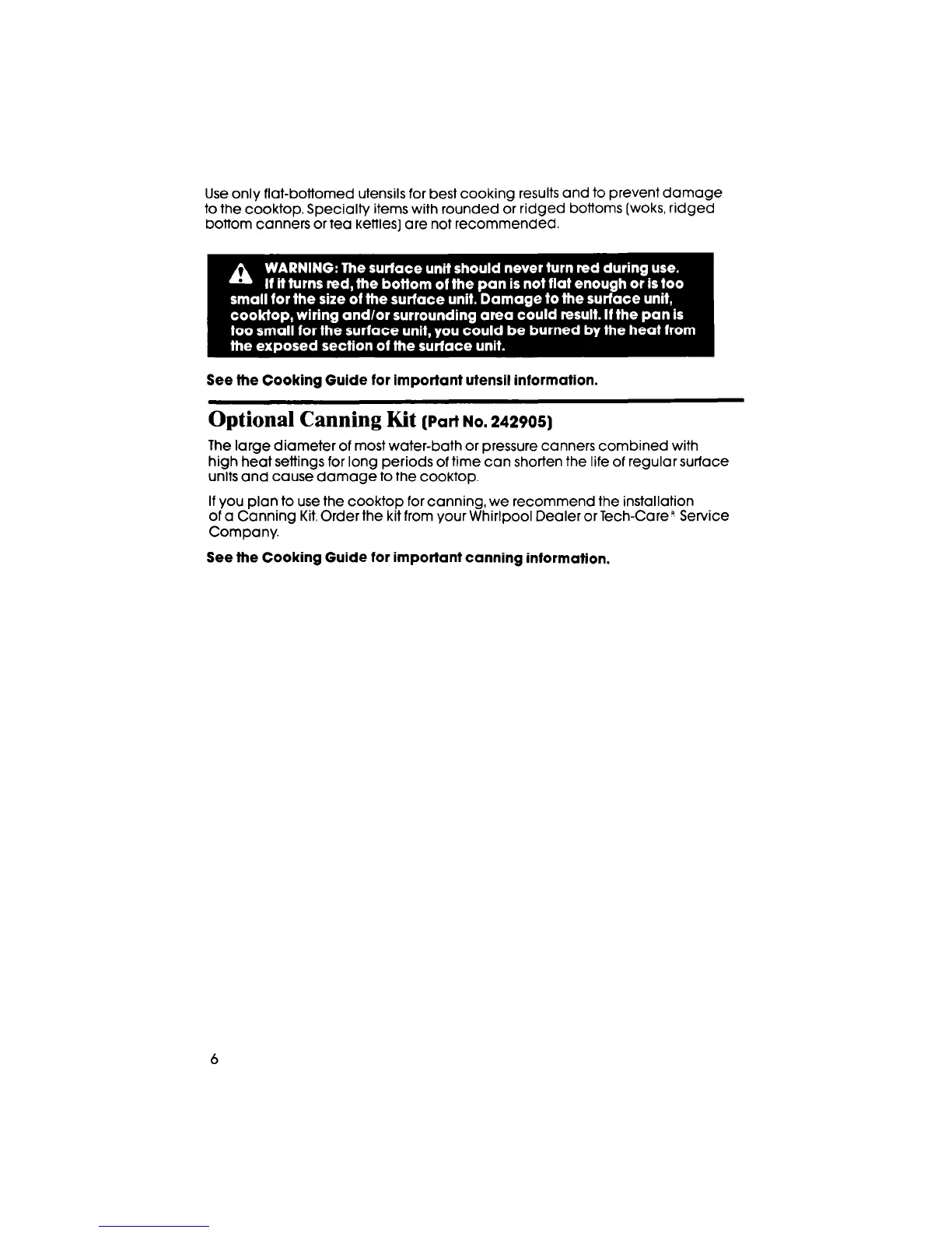of a Canning Kit. Order the kit from your Whirlpool Dealer or Tech-Care” Service