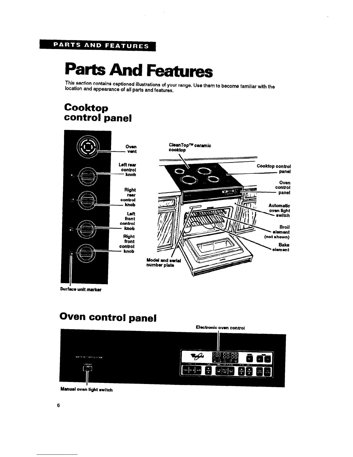 Whirlpool RS696PXB - Oven Control; Parts and Features