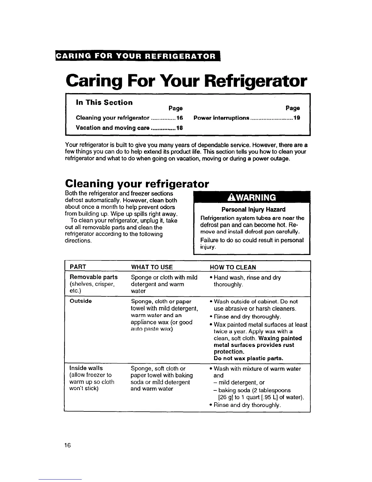 refrigerator and what to do when going on vacation, moving or during a power outage.