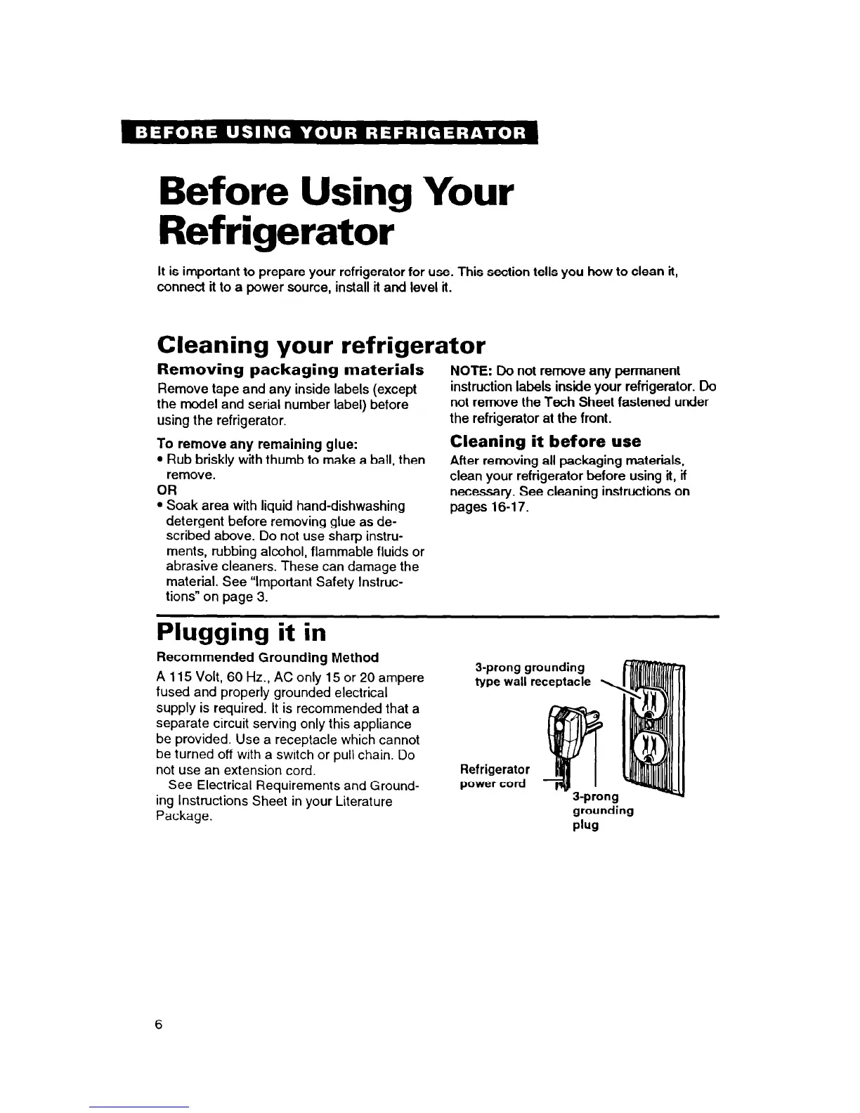 It is important to prepare your refrigerator for use. This section tells you how to clean it,