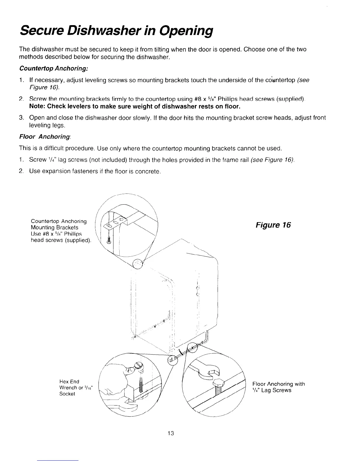 The dishwasher must be secured to keep it from tilting when the door is opened. Choose one of the two