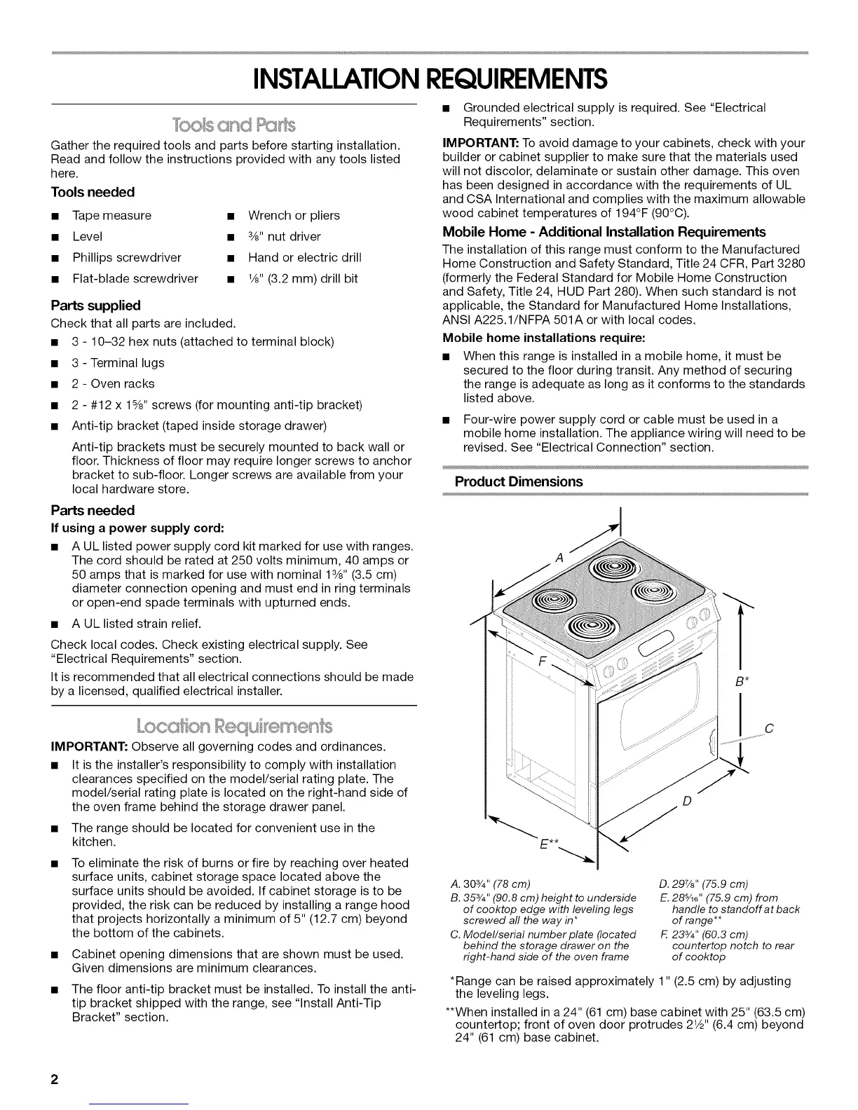 2 - #12 x 1%" screws (for mounting anti-tip bracket)