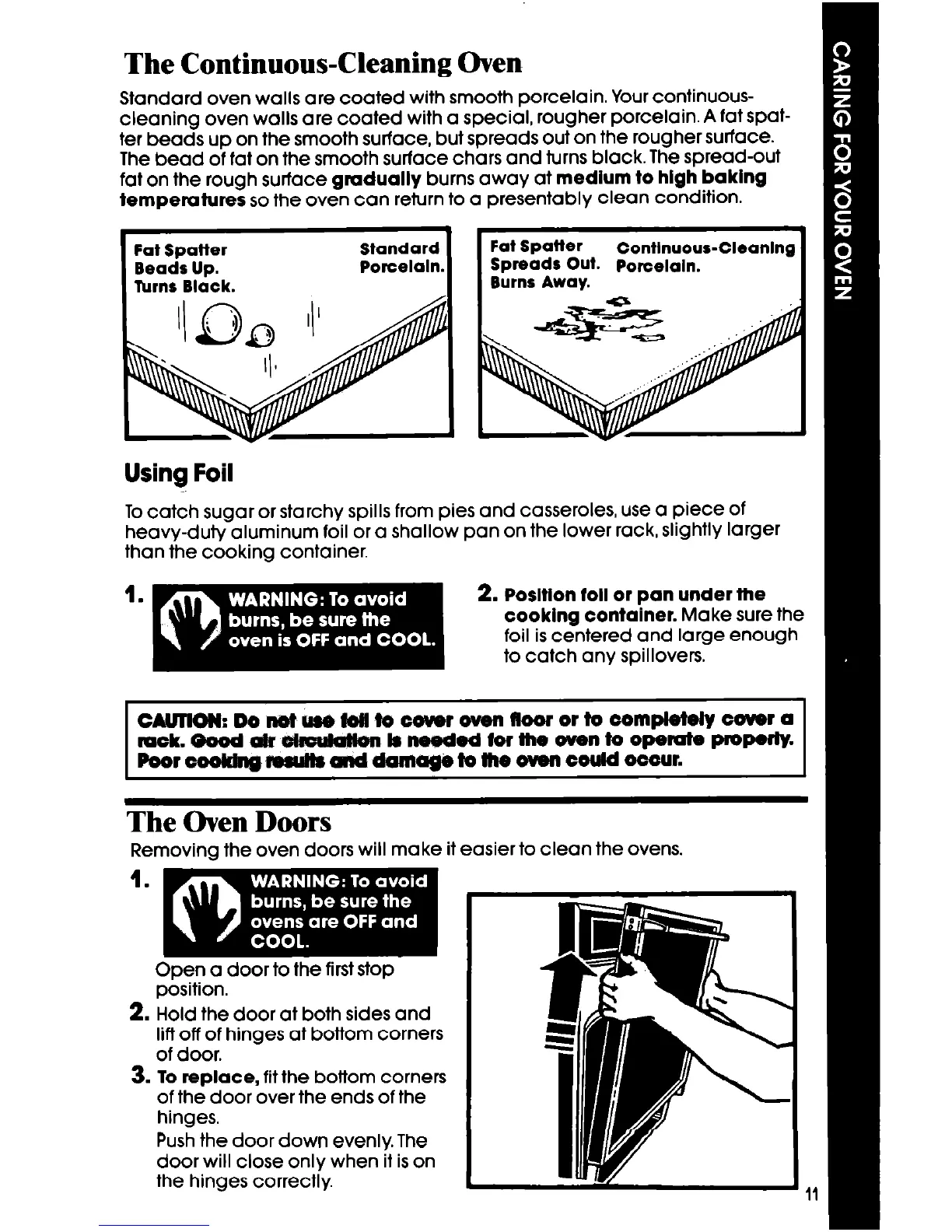 Standard oven walls are coated with smooth porcelain. Your continuous-