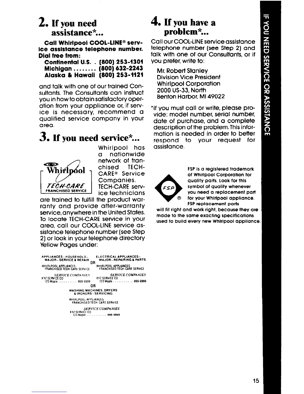 Call Whirlpool COOL-LINE@ serv-