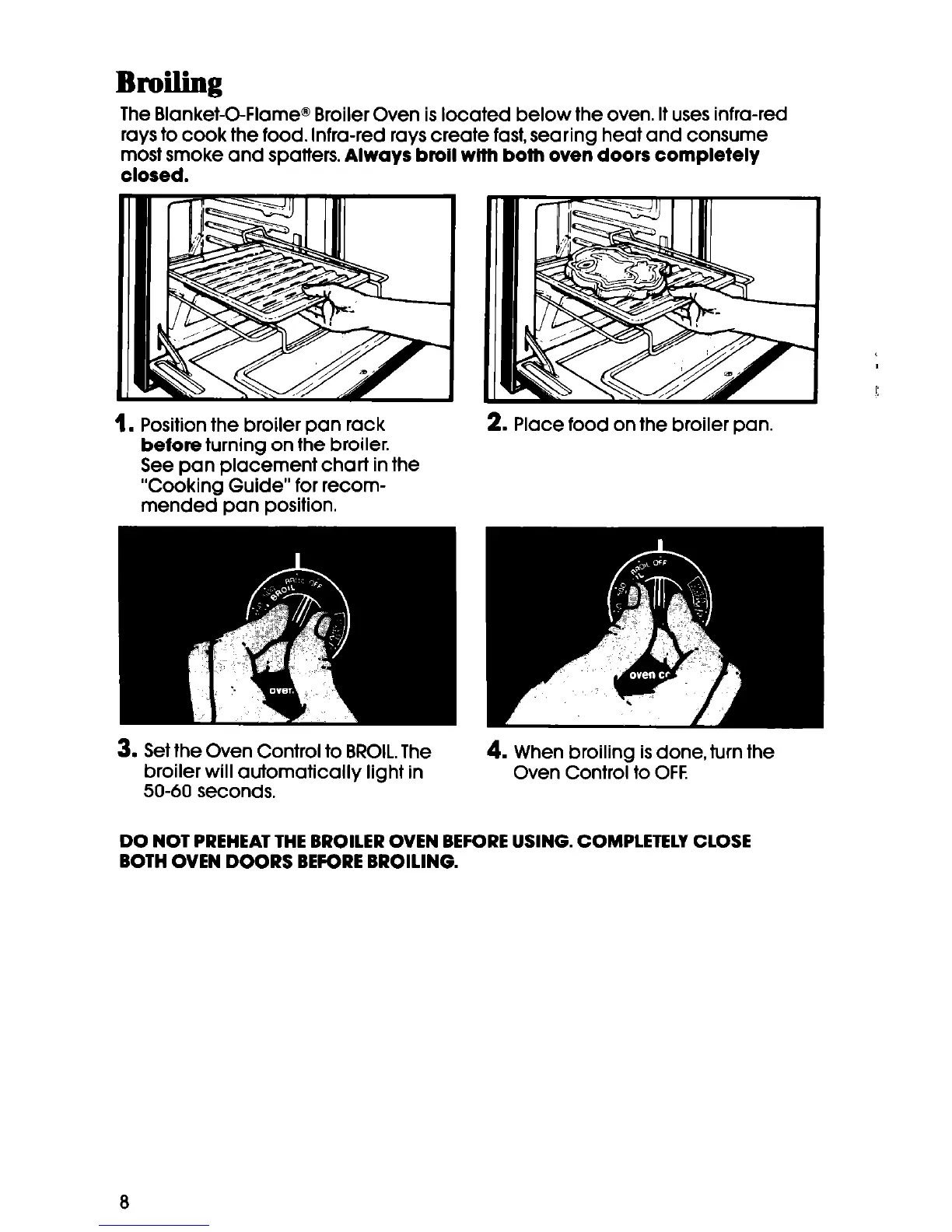 DO NOT PREHEAT THE BROILER OVEN BEFORE USING. COMPLETELY CLOSE