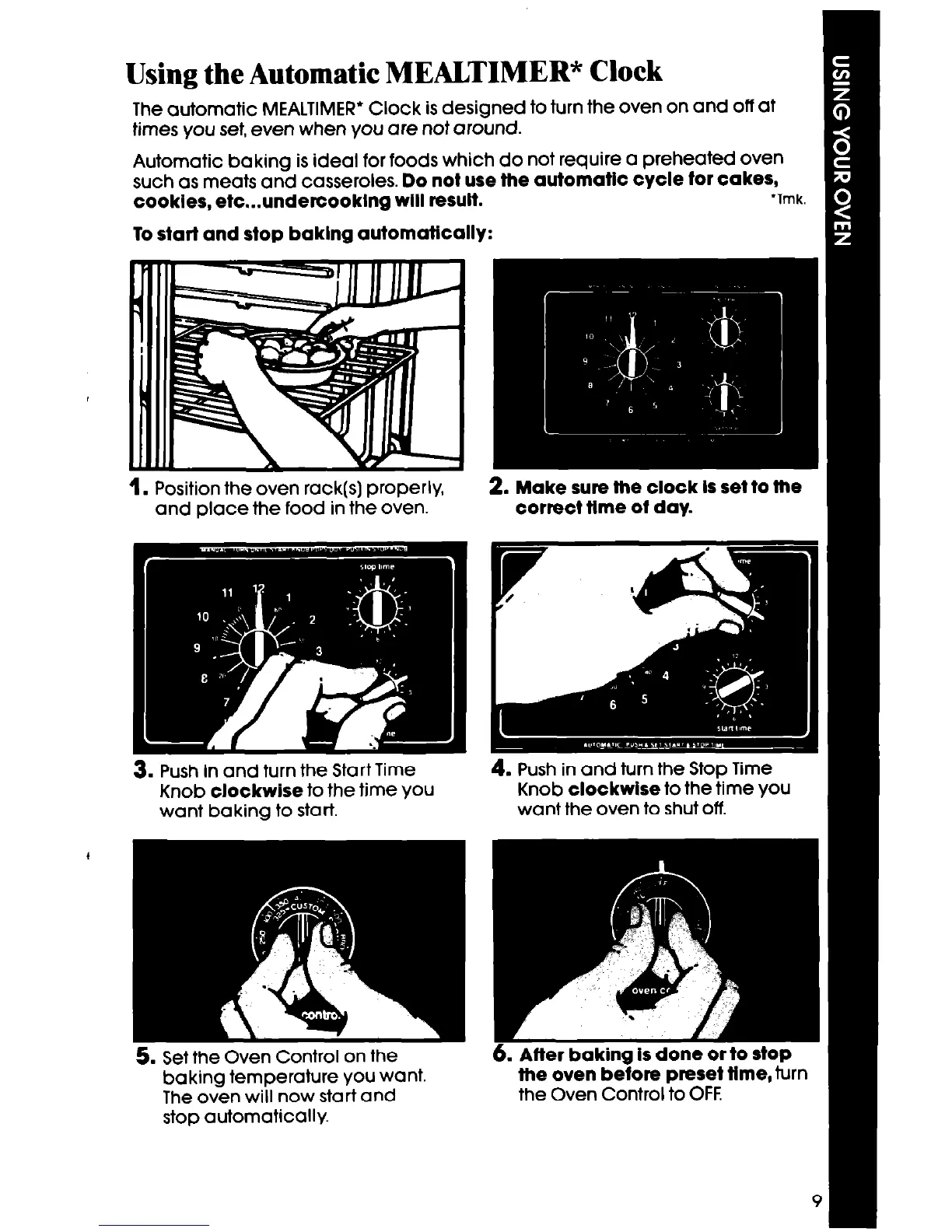 The automatic MEALTIMER* Clock is designed to turn the oven on and off at