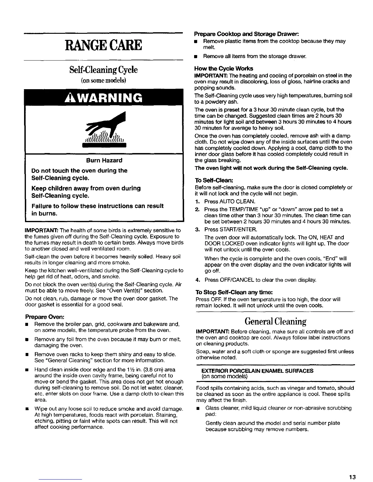 the fumes given off during the Self-Cleaning cycle. Exposure to
