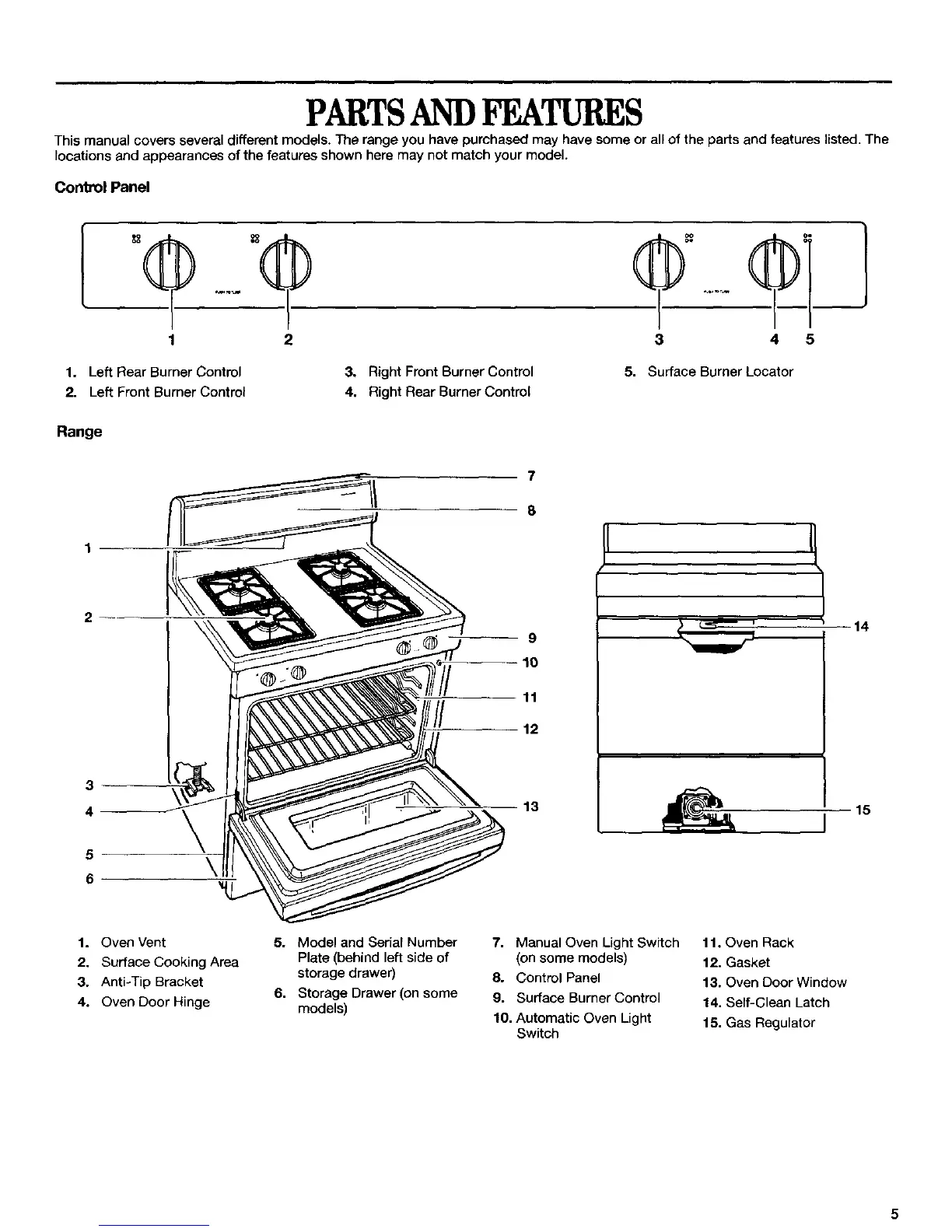 This manual covers several different models. The range you have purchased may have some or all of the parts and features listed. The