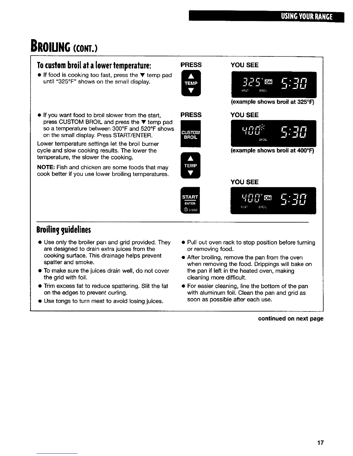 press CUSTOM BROIL and press the • temp pad