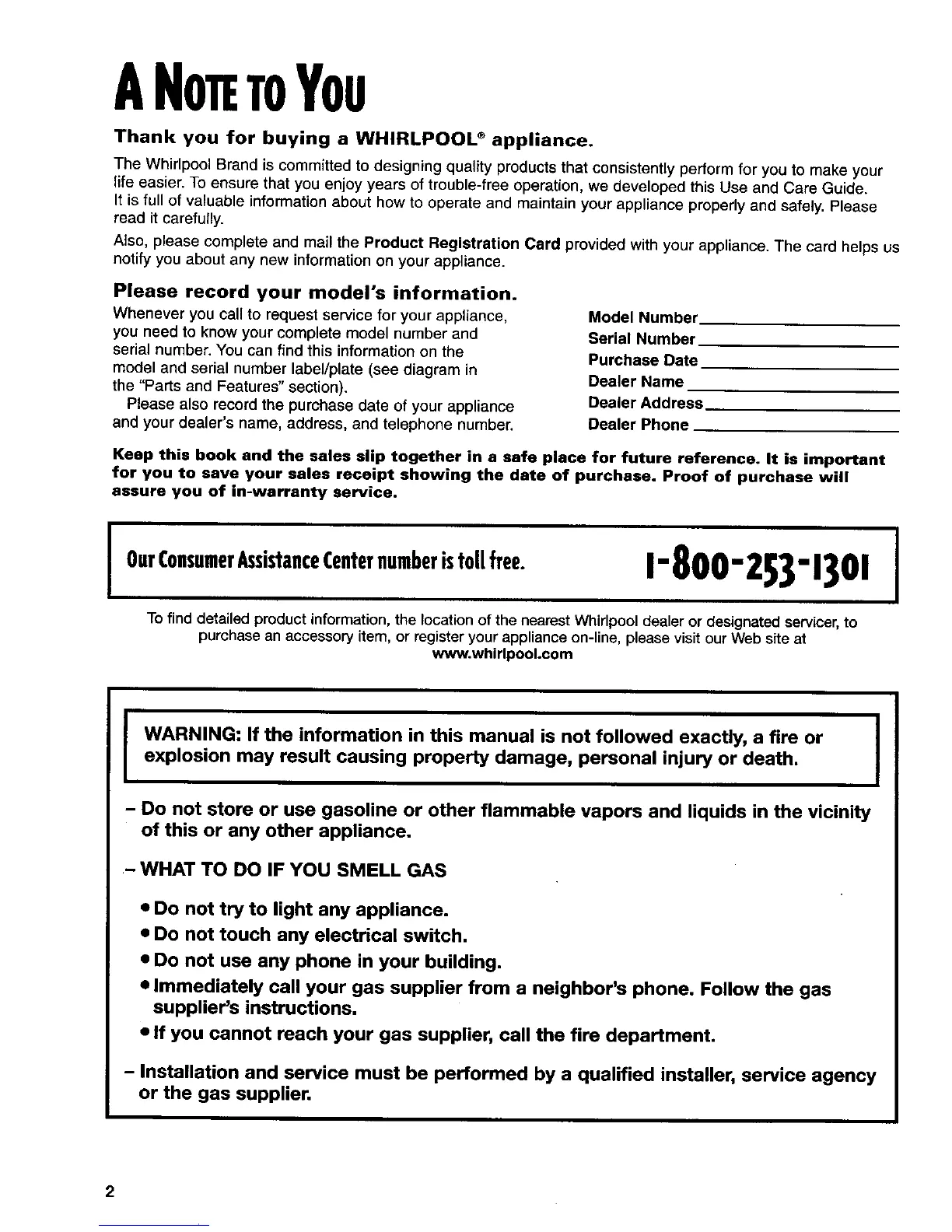 Also, please complete and mail the Product Registration Card provided with your appliance. The card helps us