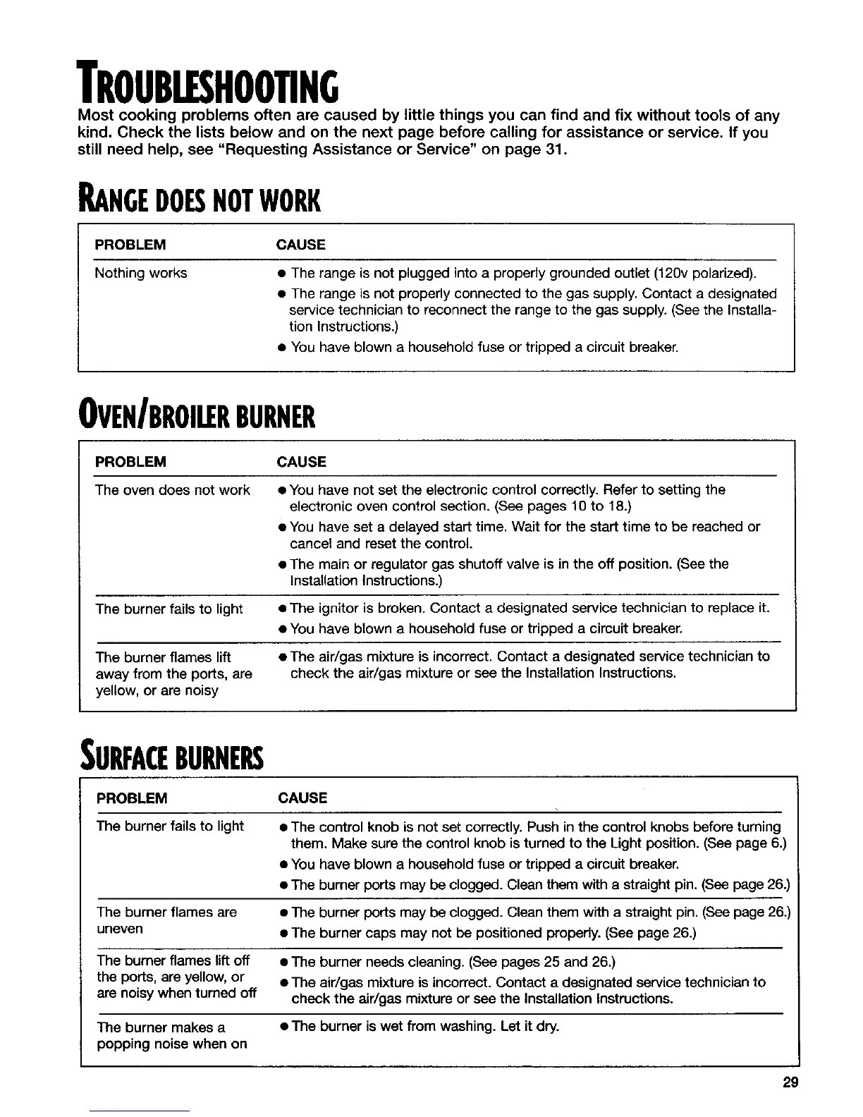kind. Check the lists below and on the next page before calling for assistance or service. If you