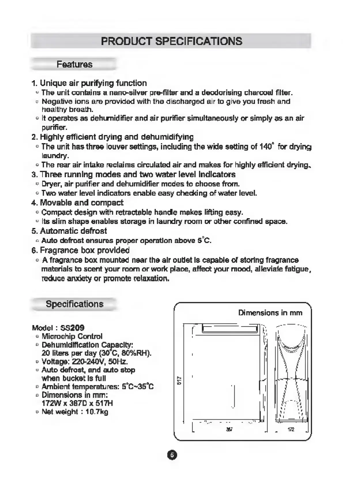 Whirlpool SS209 - Product Specifications