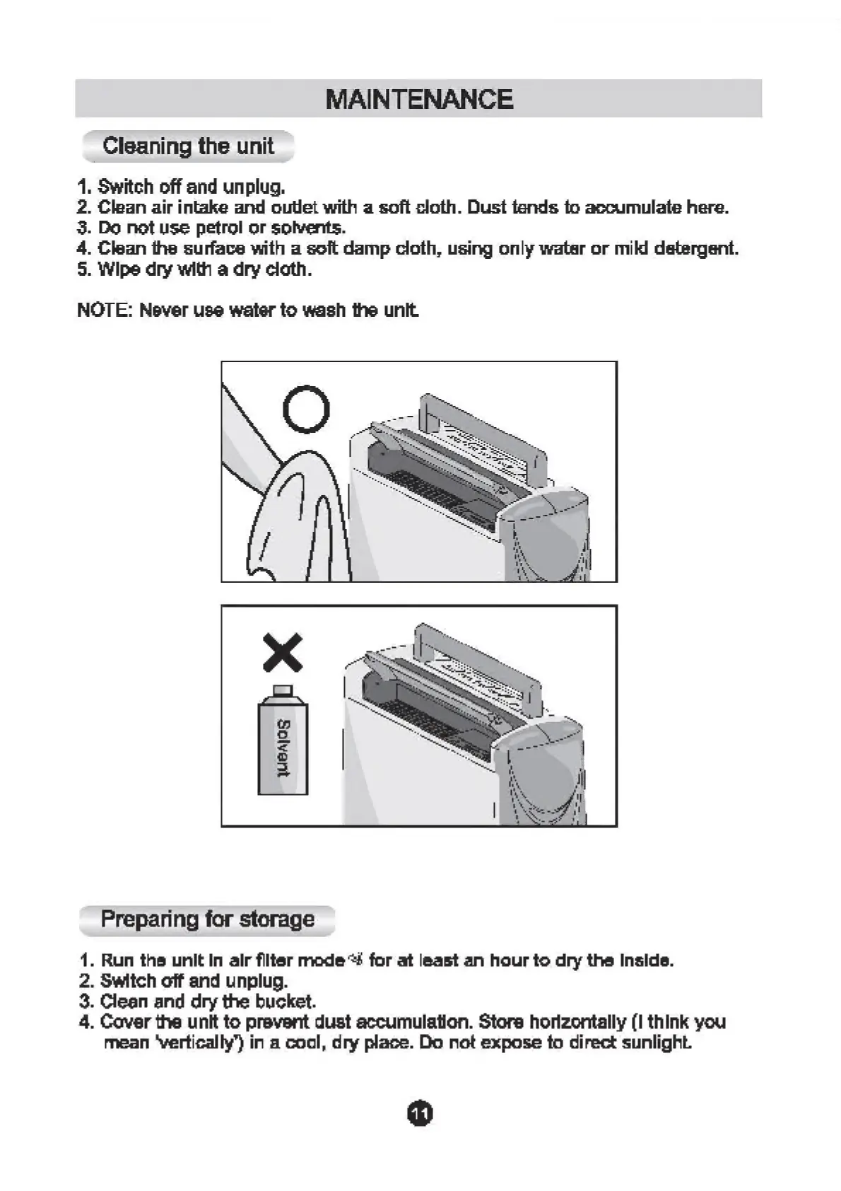 Whirlpool SS209 - Cleaning the Unit; Preparing for Storage
