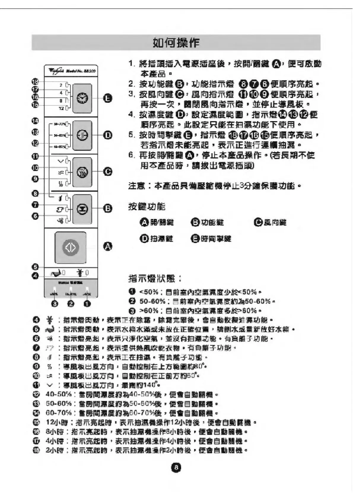 Whirlpool SS209 - Control Panel and Indicators; Function Key Operations; Status Indicator Meanings