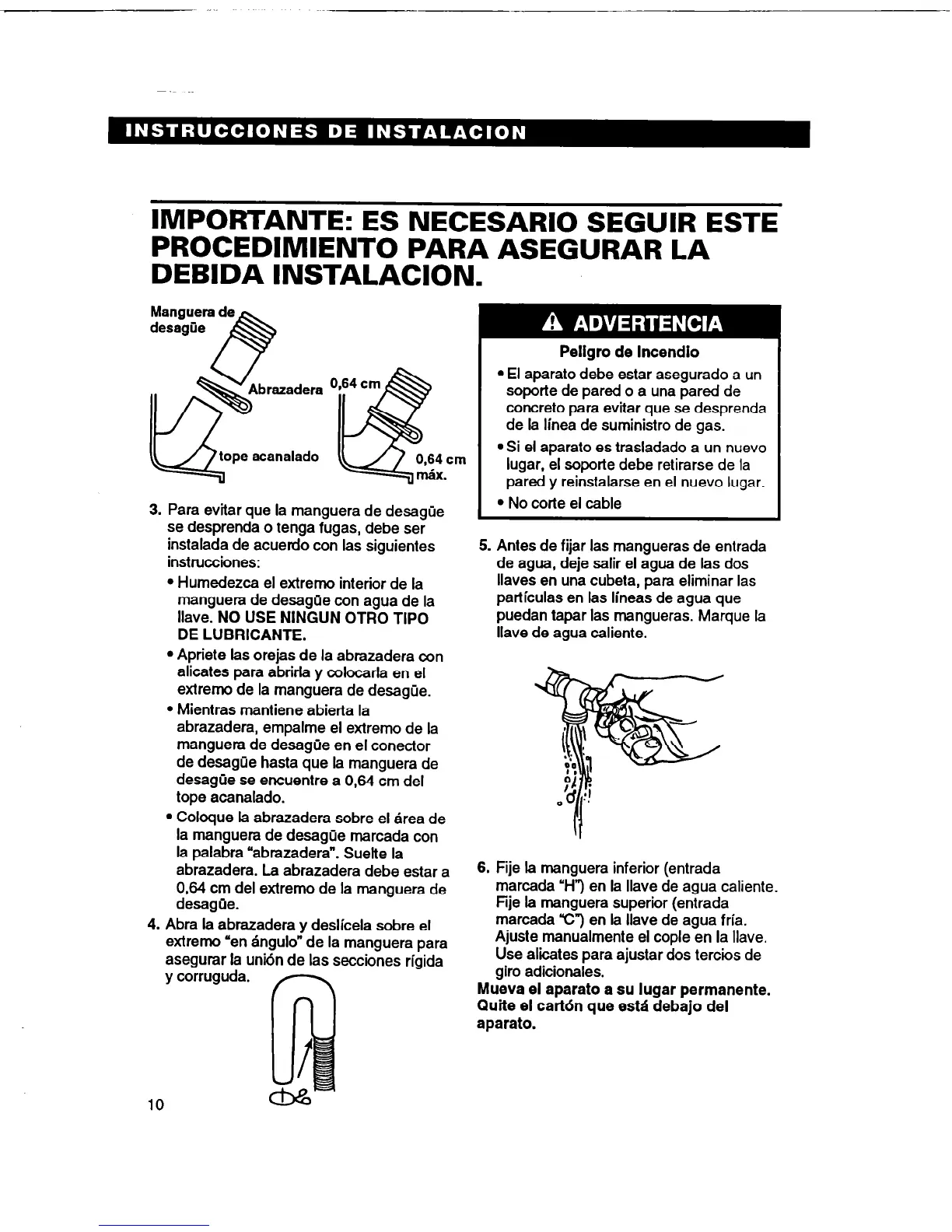 3. Para evitar que la manguera de desague