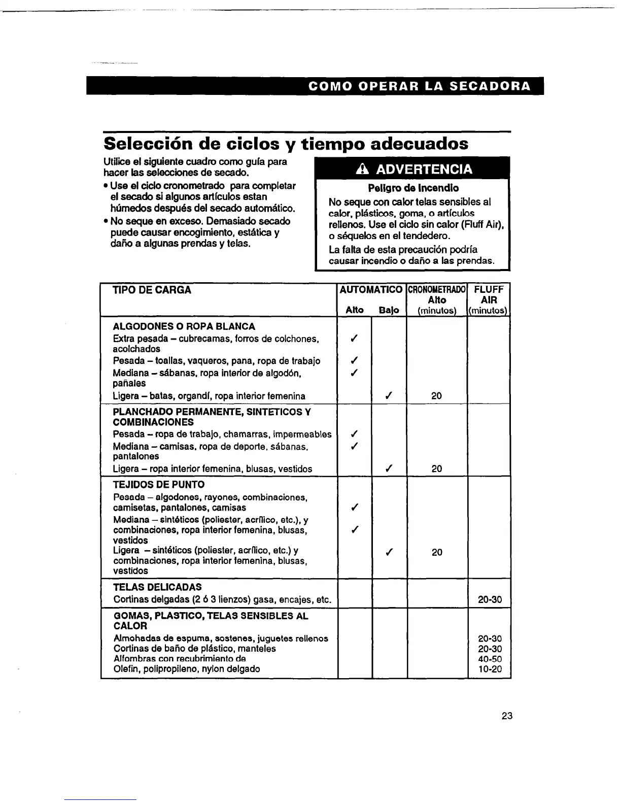 causar incendio o daAo a las prendas.