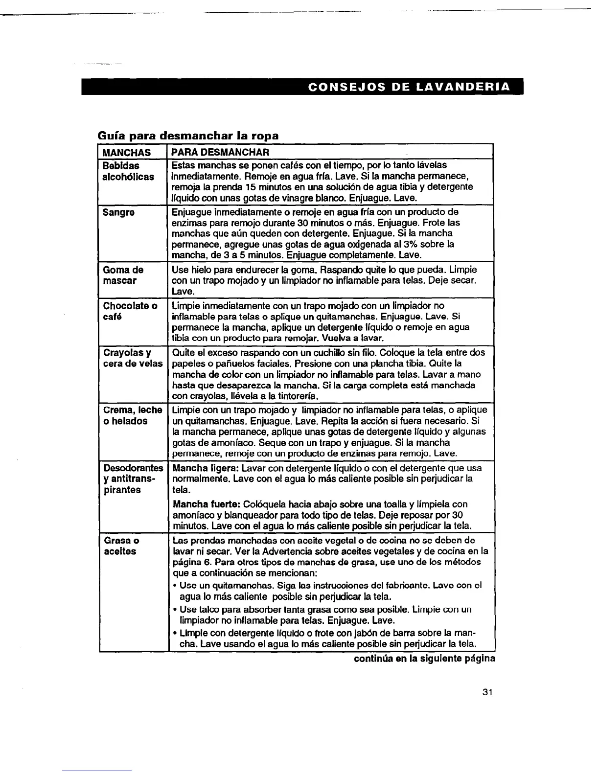 normalmente. Lave con el agua lo m&r caliente posible sin perjudicar la