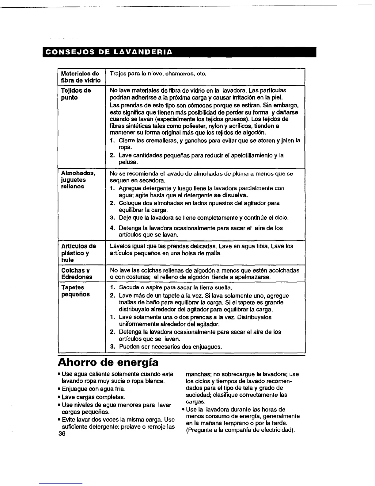 2. Lave cantidades pequefias para reducir el apelotillamiento y la