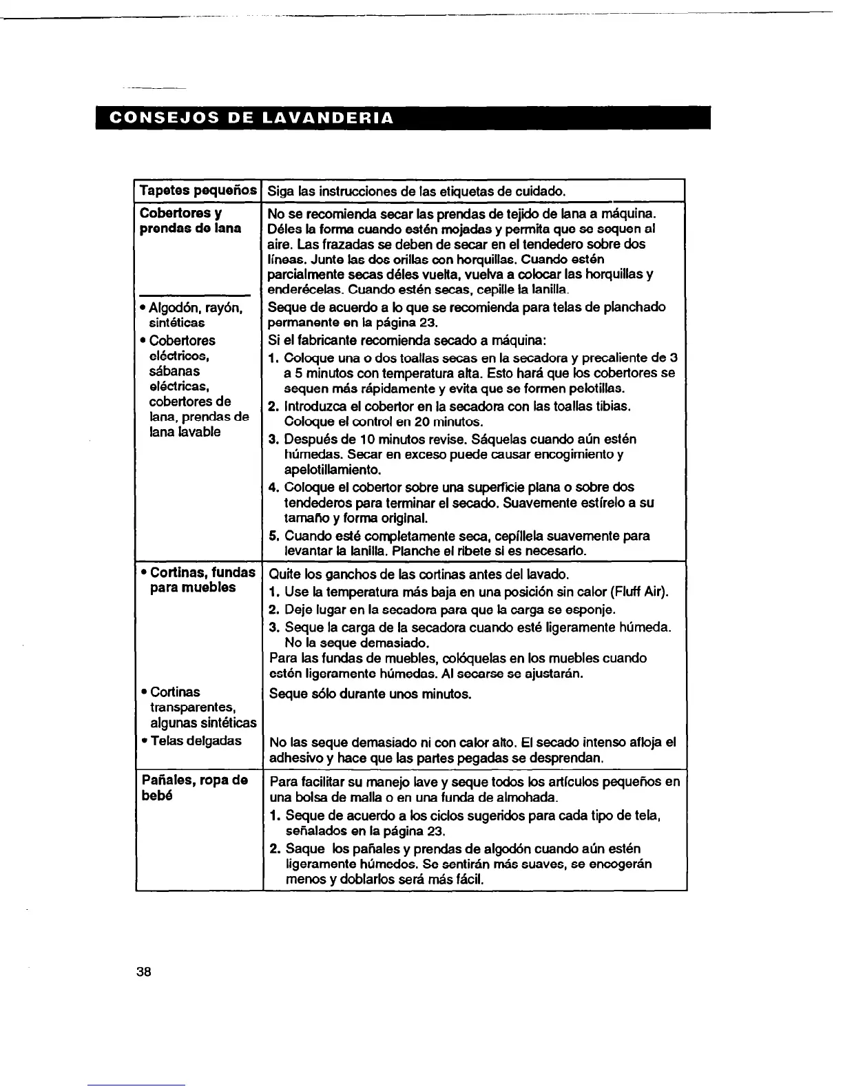 1. Seque de acuerdo a bs ciclos sugeridos para cada tipo de tela,