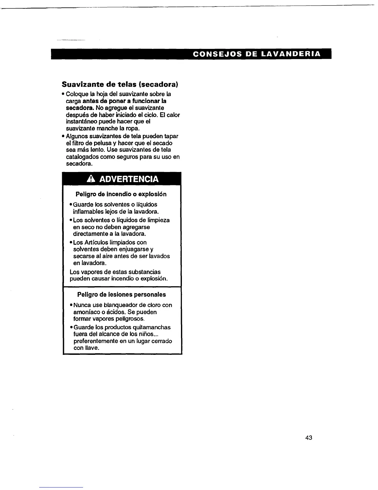 inflarnables lejos de la lavadora.