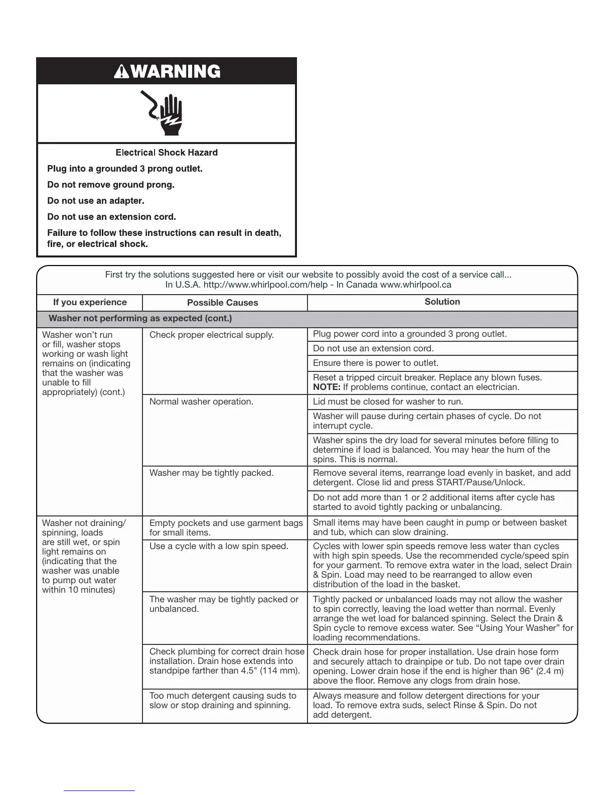 Washer not performing as expected (cont.)