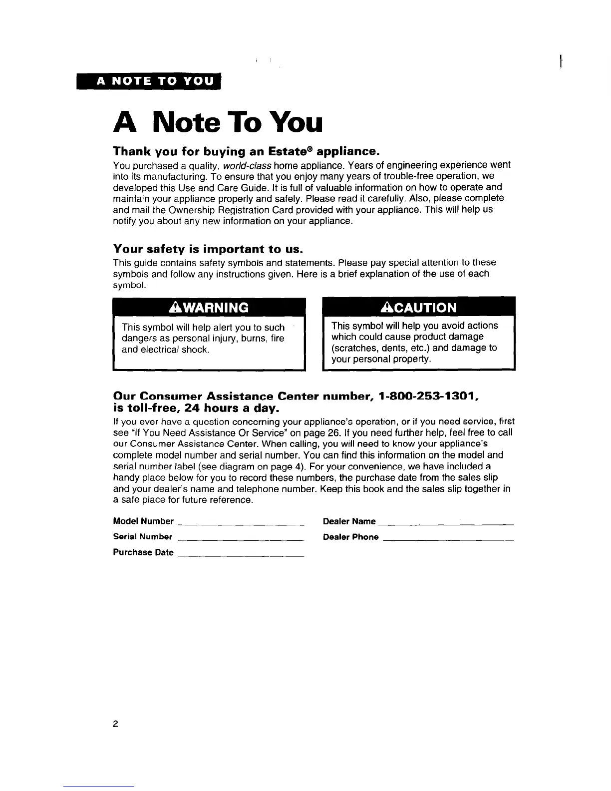 Thank you for buying an Estate@’ appliance.