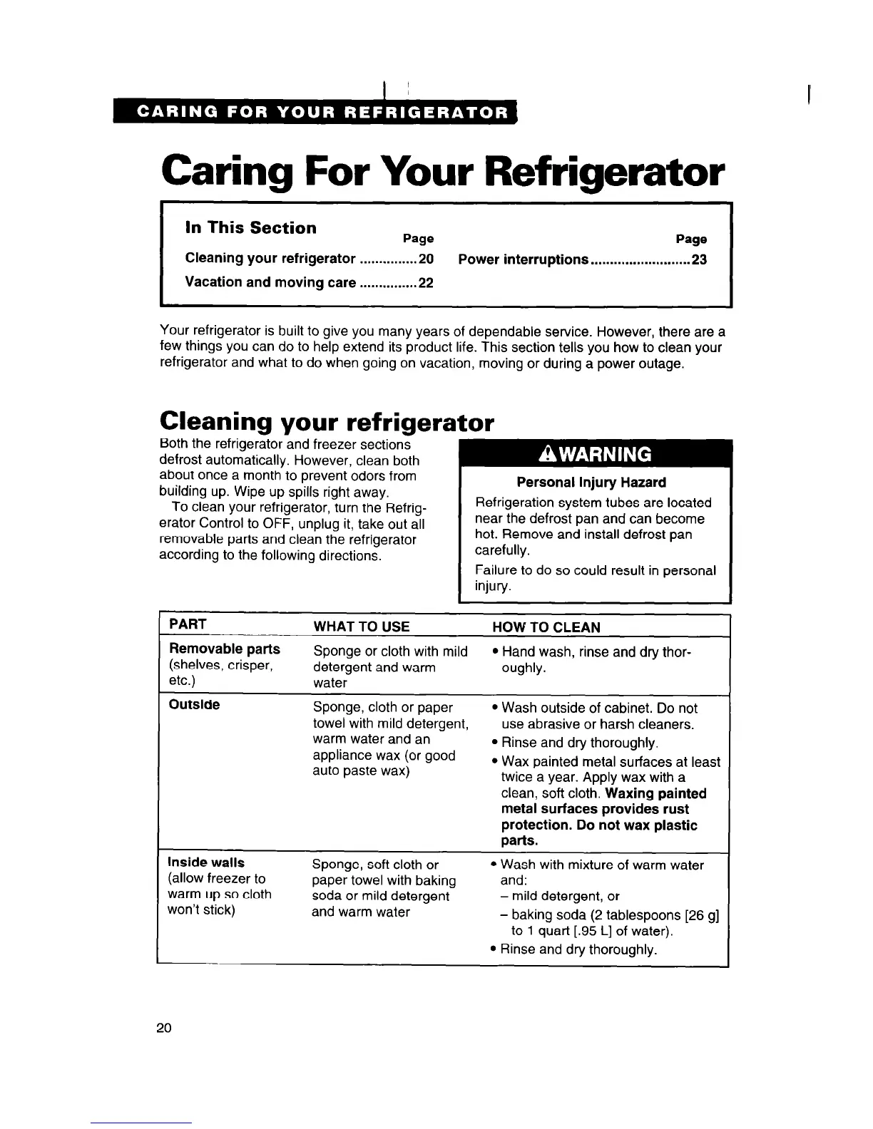 refrigerator and what to do when going on vacation, moving or during a power outage.