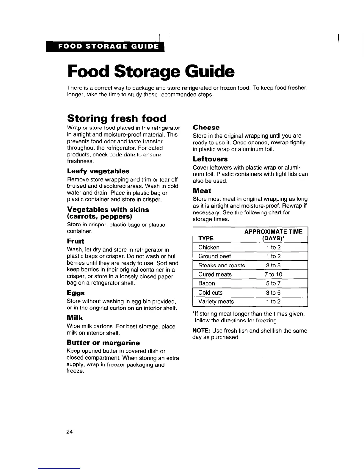 *If storing meat longer than the times given,