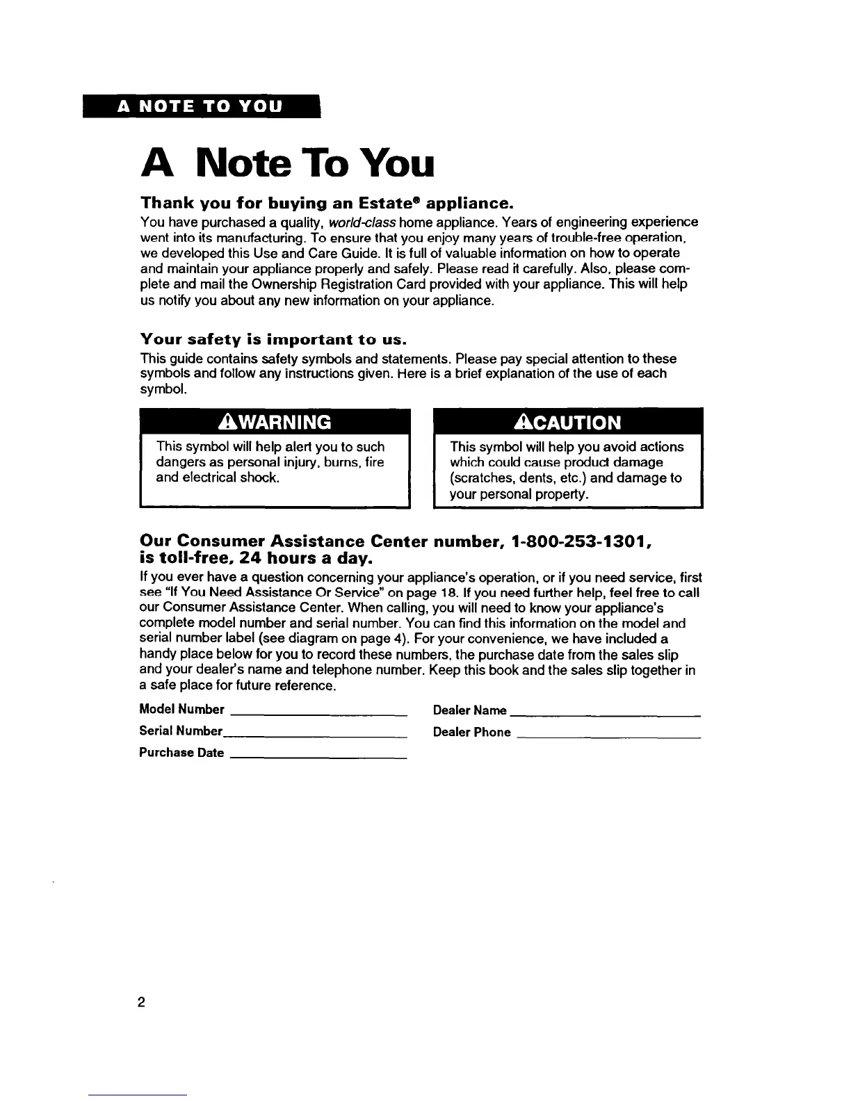 our Consumer Assistance Center. When calling, you will need to know your appliance’s