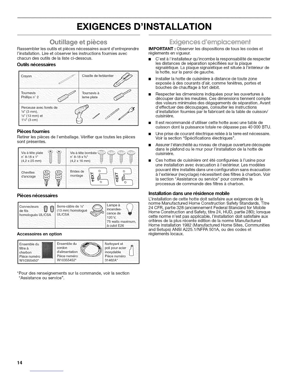 L'installation de cette hotte doit satisfaire aux exigences de la